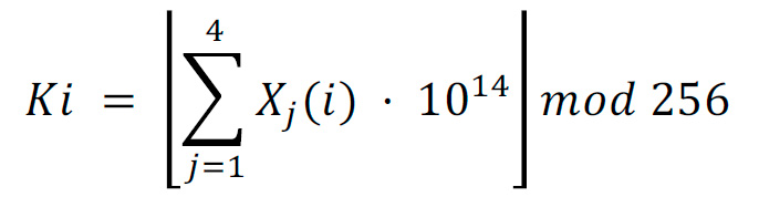 Aquí 𝜅𝑖 ∈ {0, 1, 2,…, 255} e 𝑖 = 1,…, 𝑛 , donde 𝑛 = 𝑙 × 𝑚 con 𝑙,𝑚 de acuerdo con el tamaño de la imagen en escala de grises a ser encriptado.