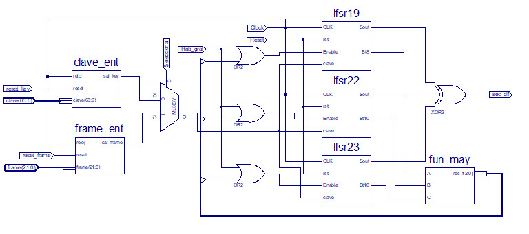 Figura 9. Resumen del diseño del algoritmo A5 1 sobre la Spartan 3E.