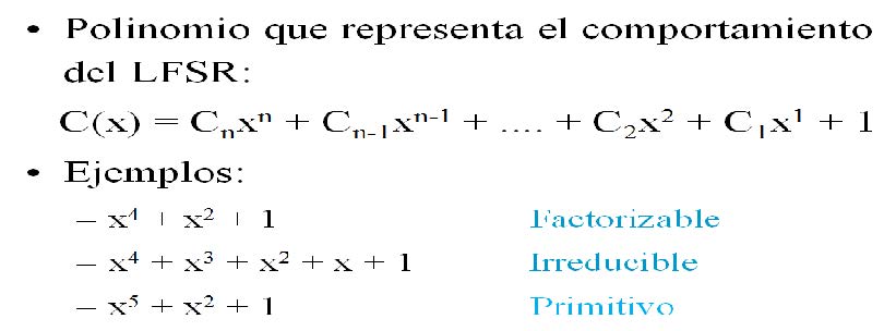 Figura 2. Polinomios para el diseño de LFSR que dictan las operaciones sobre los registros de desplazamiento por retroalimentación.