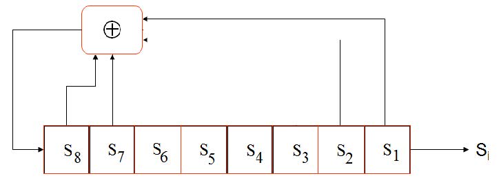 Los LFSR se han utilizado para aplicaciones en comunicaciones celulares GSM, aunque para estas implementaciones no se rigen por un estándar ya que estos algoritmos se han mostrado en cuestiones de enseñanza para generación de secuencias binarias mediante operaciones OR-exclusivas. Lo que inicialmente se necesita una estructura que debe consistir de número de bits, semilla o vector de inicio VI (diferente de cero) y polinomio primitivo para su funcionamiento. [2], Fig. (1).