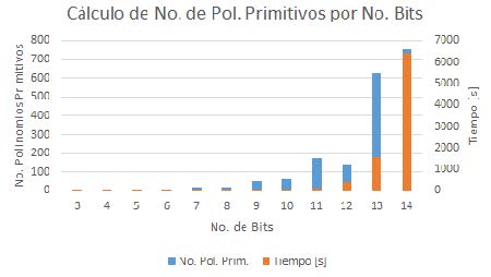 | No. de Bits | No. Pol. Prim. | Tiempo [s] |