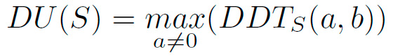 Definición 4: DU (siglas de distribution uniformity): Es el valor más grande de la DDT donde a ̸= 0 y se denota como: