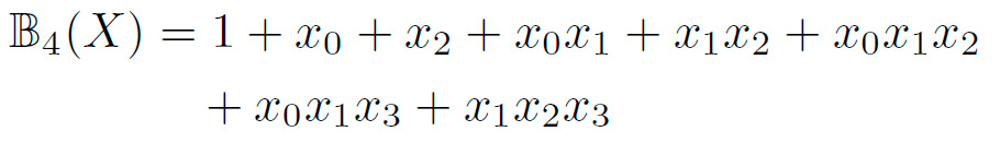 Las siguientes funciones Booleanas representan la ANF de las coordenadas de la caja de TWINE, donde X representa los cuatro bits de entrada X = {x3, x2, x1, x0}: